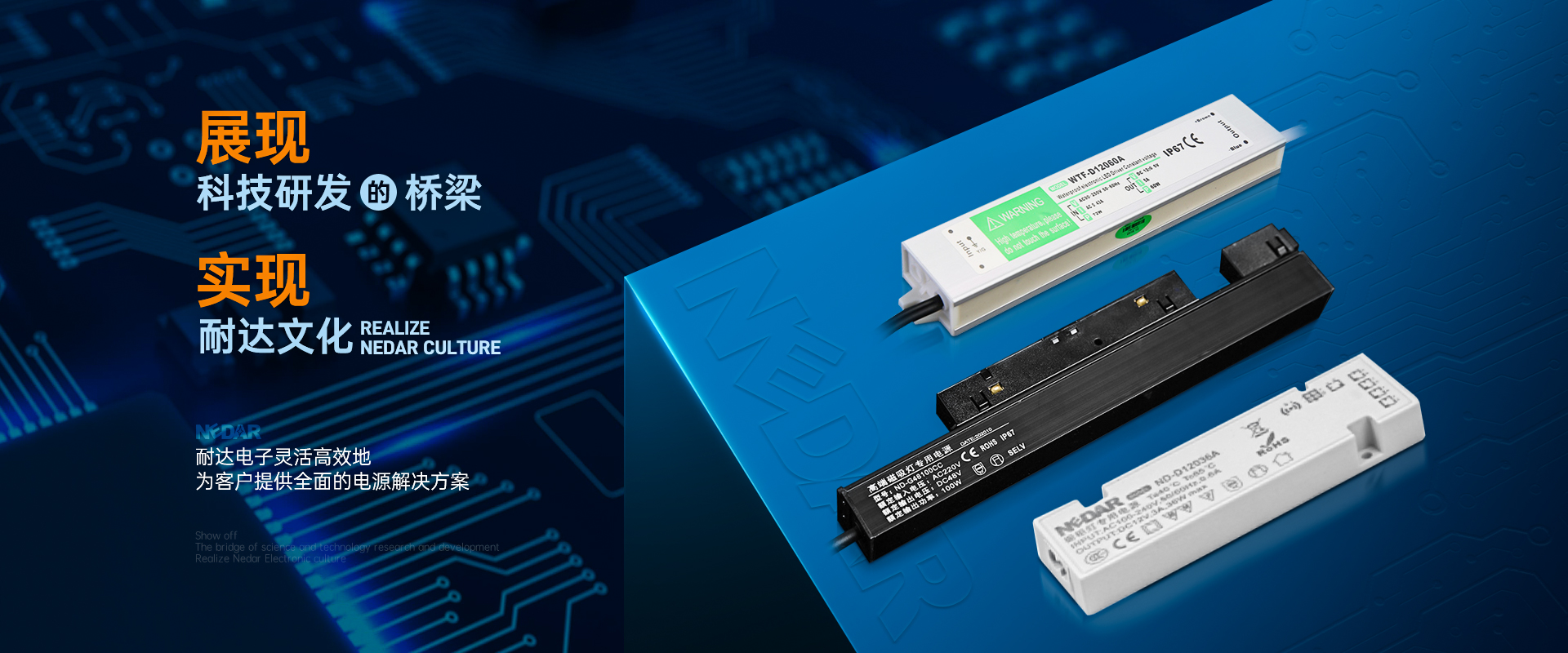 中山市耐達電子有限公司成立于2009年,是一家專業研發、生產、銷售LED磁吸軌道燈電源、鏡前燈電源、櫥柜燈電源、防水開關電源等智能家居電源的企業。公司位于有“中國小家電產業基地”之稱的——廣東省中山市東鳳鎮。公司產品遍及國內各省、市,并遠銷出口歐、美、東南亞等二十幾個國家。